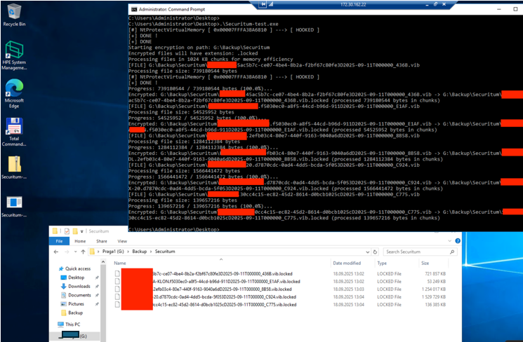 Access to the rest (4 others) was not achieved. Preparation The simulation involved preparing a program that would simulate the encryption of backups stored on backup systems. To this end, I started by preparing the code. I chose C with the use of WinAPIs. I generated AES-256 encryption with hardcoded keys using AI, as the available AES libraries are quite well-known to AV vendors. A local test on ESET was promising, as it was possible to run the program and bypass ESET (an initial indicator of whether it is worth entering the client's infrastructure).