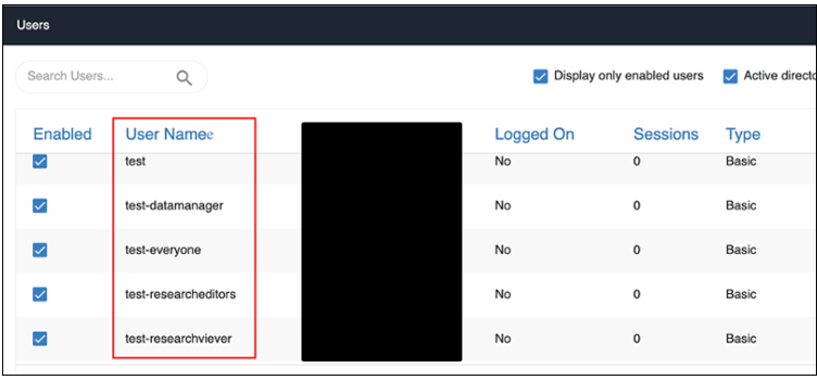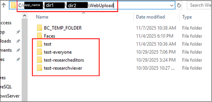 View of the file structure in the system, each user has their own folder with uploaded files:
