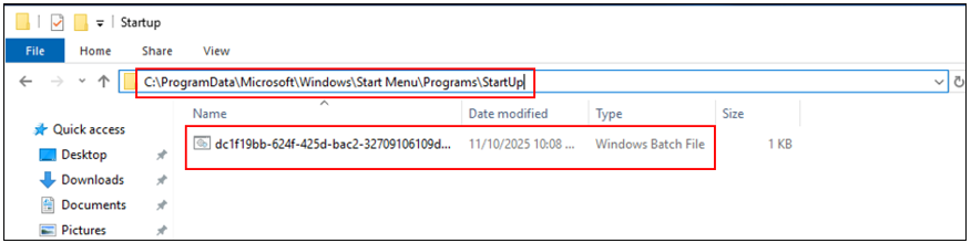 3. Effect: The file lands in the autostart application folder. Upon logging in to the server again, the Windows system automatically executes our script.