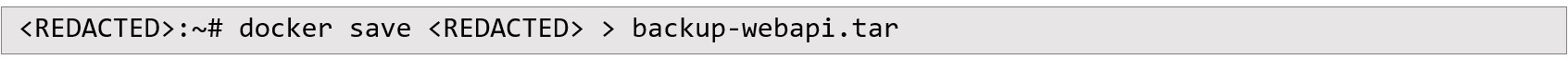 The auditor proceeded to save a docker image into a TAR file named backup-webapi.tar: