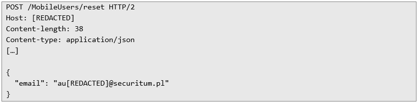 Such behavior opens a possibility to provide any email corresponding to existing application user and then simply open a password reset link from a response in order to set a new password for the selected account.