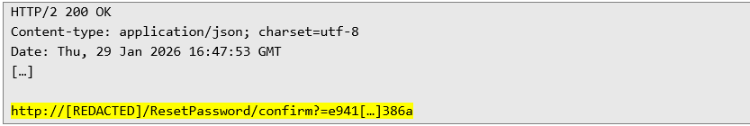 The below response contains the surprise – the same token which was delivered to provided email address is provided in the response body: