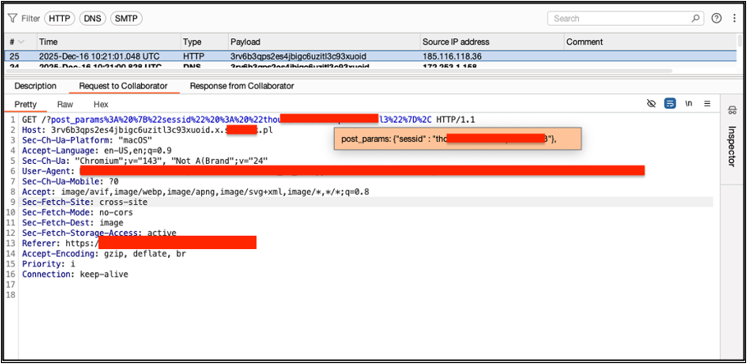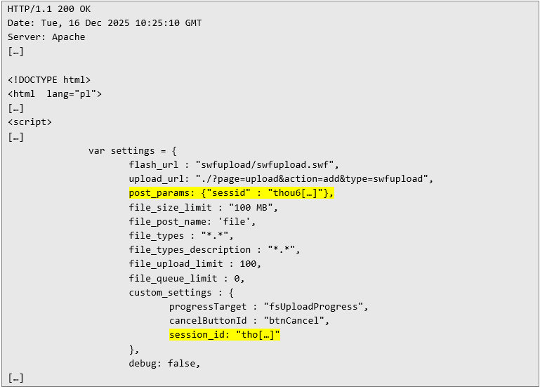 During the tests it was found out that one of application’s pages contains a session cookie in HTTP response body: